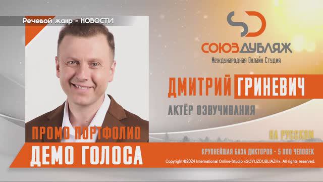 Актер озвучивания Дмитрий Гриневич — демо голоса
