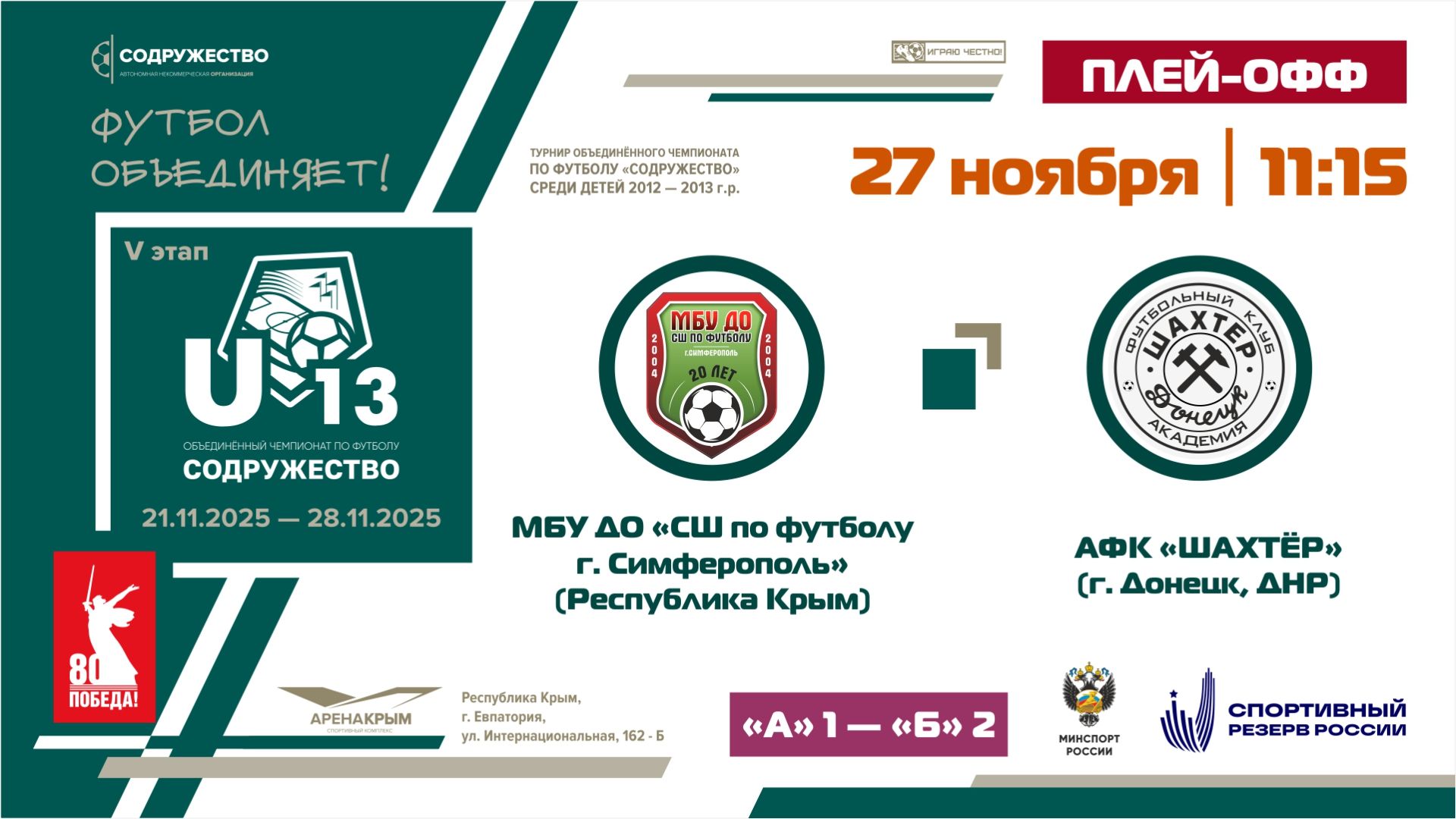 Игра за 1-4 места | МБУ ДО «СШ по футболу» (г. Симферополь) – АФК «Шахтёр» (г. Донецк) | 27.11.2025