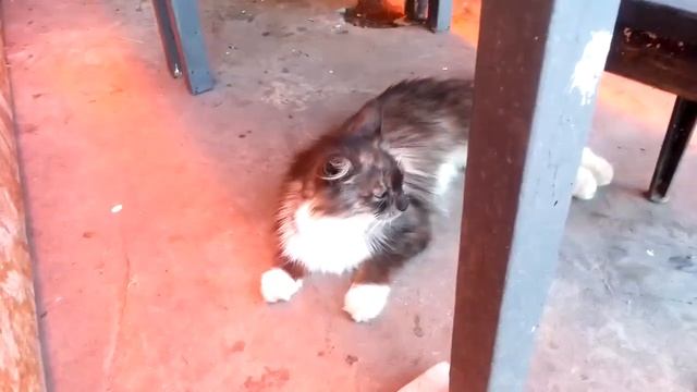 Красивая пушистая кошка Барса мило мяукает в ответ на свое имя. Зимняя дача. Борьба за выживание.