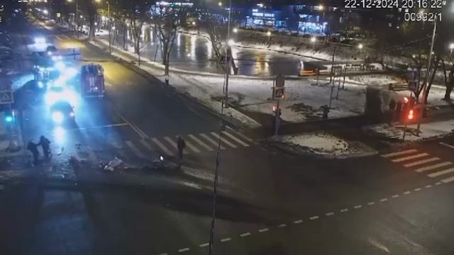 Момент массового ДТП: столкновения пожарной машины и автобуса на Новочеркасском бульваре в Москве.