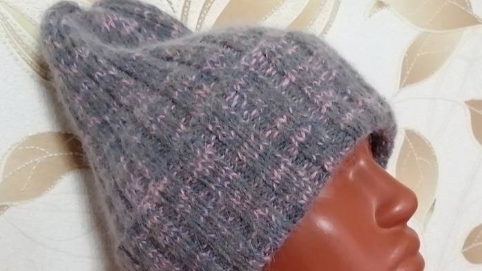 №332 Шапка спицами из пуха норки резинкой. Как вязала. Спицы № 3. Параметры шапки. #вязание