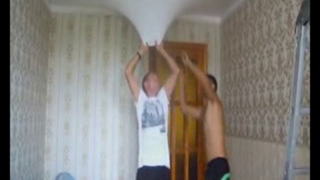 Демонстрация прочности натяжных потолков