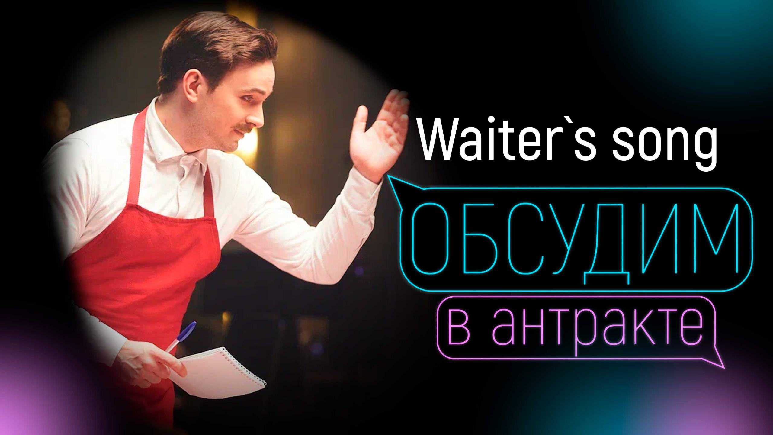 Вокальный номер из выпуска шоу «Обсудим в антракте» #5 Смотреть полностью: https://rutube.ru/video/6c594bdaeffa1f212feb0b3561eed2c9/ Павел Стукалов исполняет песню Waiter's Song из мюзикла Стивена Сондхайма Here We Are. Waiter's Song Из мюзикла Here We Are Композитор: Стивен Сондхайм Авторы текста: Стивен Сондхайм, Дэвид Ивз Перевод: Анна Турова Исполнители: Павел Стукалов, Артём Елисеев, Вилена Соколова, Алина Хохрякова, Илья Юферев