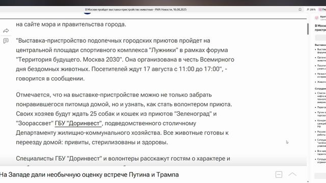 В Москве пройдет выставка-пристройство животных - РИА Новости, 16.08.2025 — Яндекс Браузер 2025-08-1
