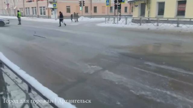 На Троицком у здания ФСБ мощный прорыв, дорогу перекрыли. Если морозы продолжаться, то это будет совсем не последний! #короткоиподелу #михаилшишов #архангельскаяобласть
