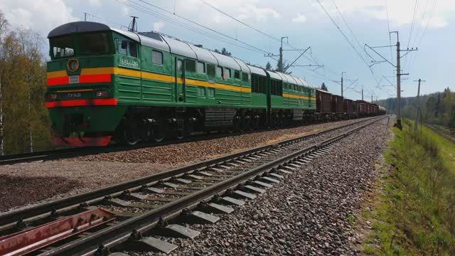 оригинальный 2ТЭ116-220 с грузовым поездом свистит турбинами на подъёме