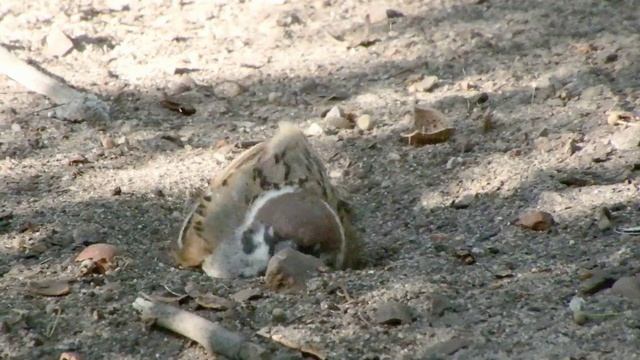 Воробей окапывается