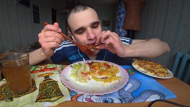 МУКБАНГ АСМР ЖАРЕНАЯ КАРТОШКА / САЛАТ / КУРИЦА ЖАРЕНАЯ/ ЛЕПЕШКА С ВЕТЧИНОЙ/ EATING ASMR Mukbang #497