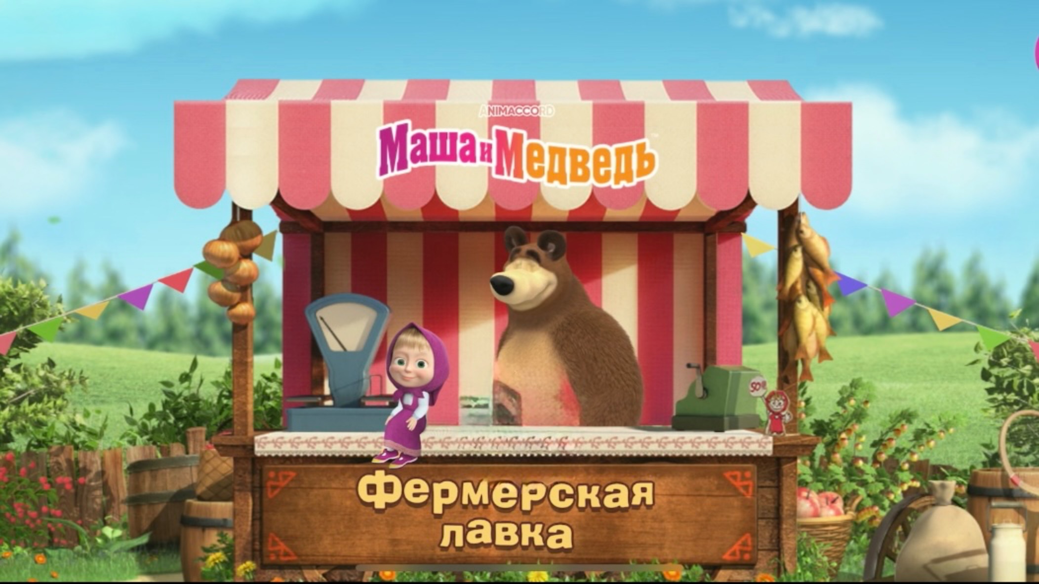 МАША И МЕДВЕДЬ ФЕРМЕРСКАЯ ЛАВКА / ВЫРАЩИВАЮТ ЯБЛОКИ, ЛОВЯТ РЫБУ, СОБИРАЮТ МЕД / АНИМАЦИЯ ДЛЯ ДЕТЕЙ 4