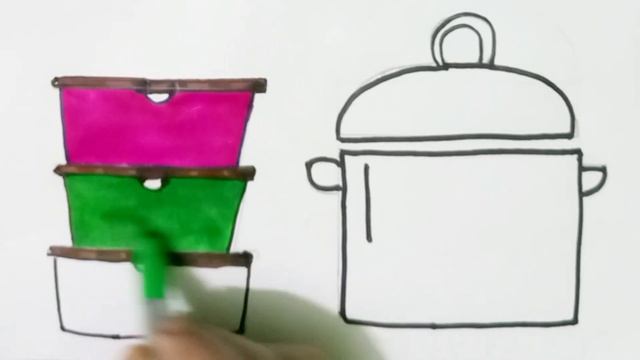 Красочное рисование кастрюли и чашек, раскраска для детей младшего возраста