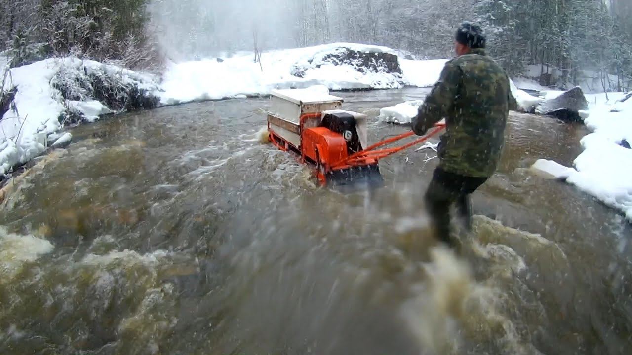 НЕ лёгкий ПУТЬ НА ЗИМНЮЮ РЫБАЛКУ 26.04.2020. В брод через реку на мотобуксировщике.