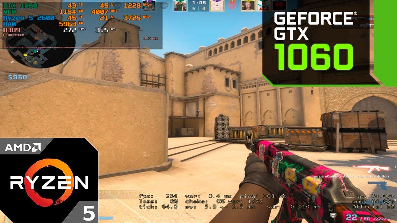 CS:GO : GTX 1060 3GB + Ryzen 5 2600