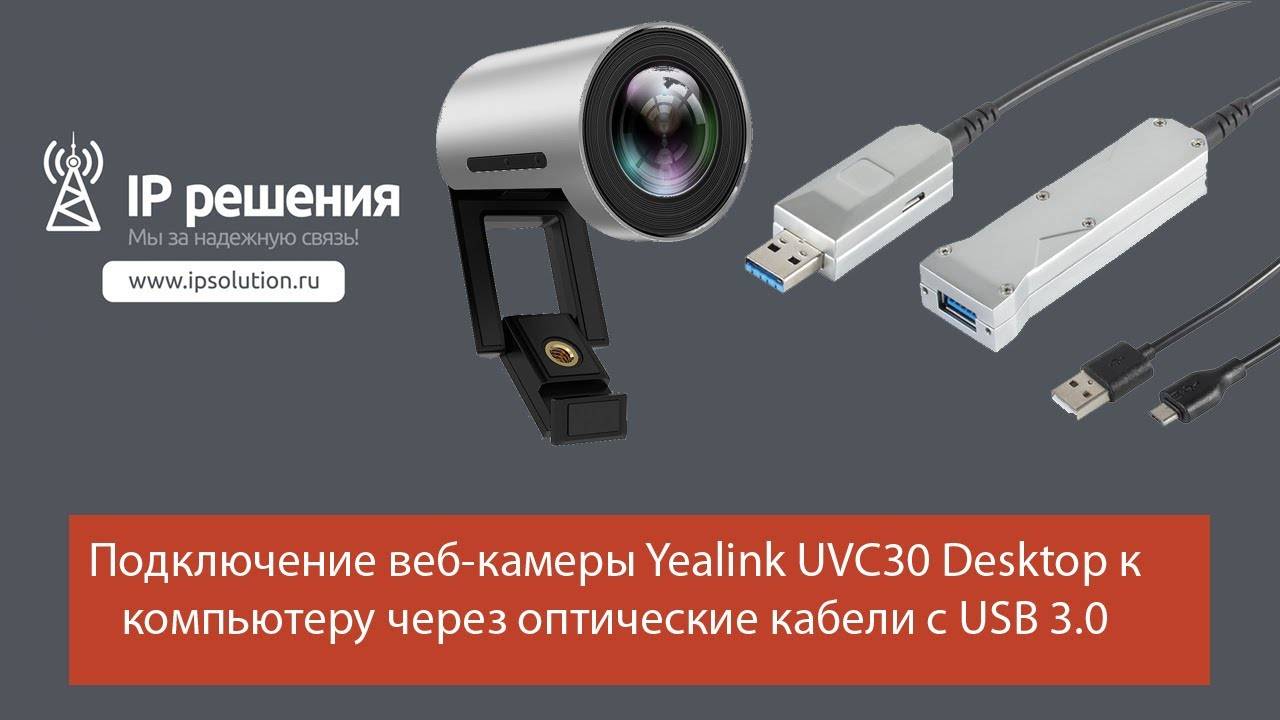 Подключение веб-камеры Yealink UVC30 Desktop к компьютеру через оптические кабели с USB 3.0.