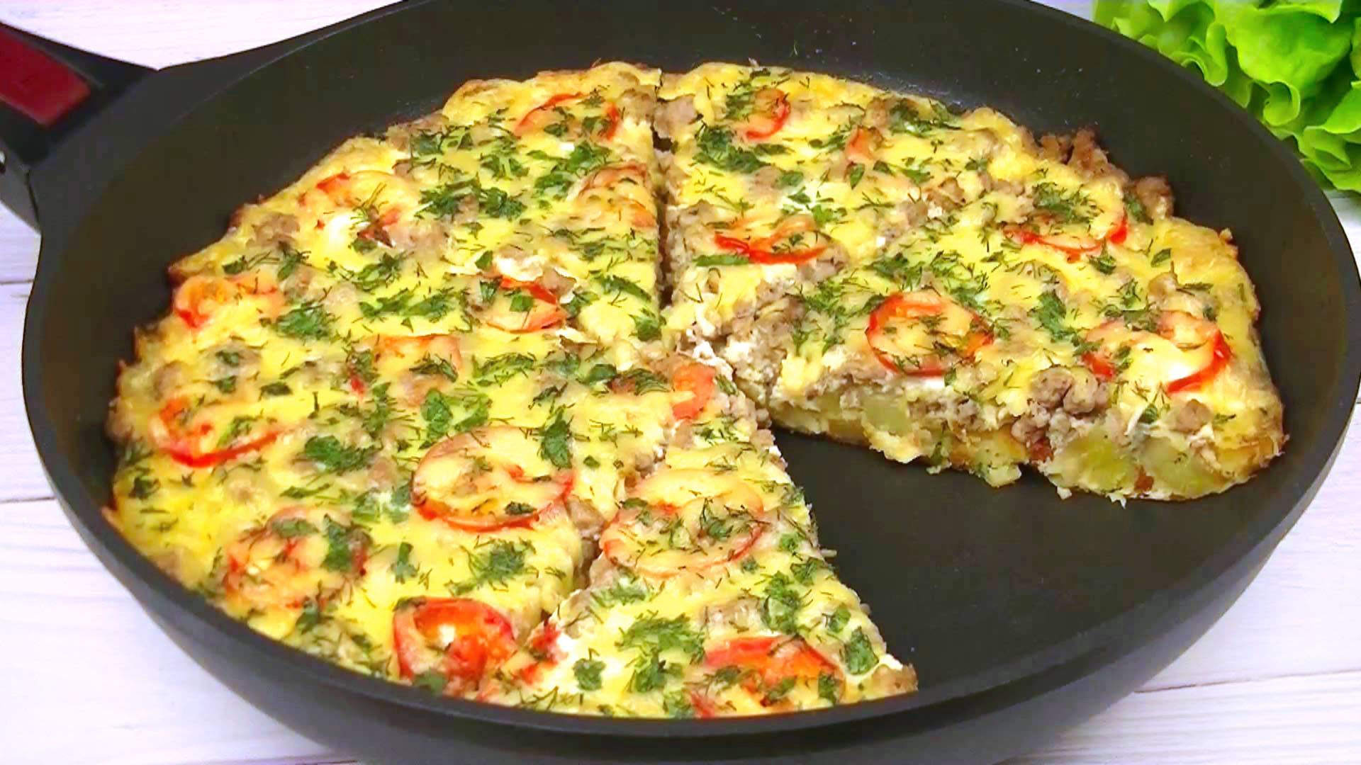 Эта запеканка настоящая палочка выручалочка на кухне. Когда нужно быстро сытно и вкусно накормить семью, этот рецепт придет вам на помощь и, конечно, станет одним из ваших любимых. Продукты: Фарш (свинина+говядина) - 300 гр. Картофель – 5-6 шт. Лук репчатый - 1 шт. Чеснок - 1-2 зубчика Молоко - 150 мл. Яйца - 3 шт. Сыр – 100-120 гр. Соль – по вкусу Перец чёрный молотый – по вкусу Масло растительное – 50 мл. Помидоры (можно без них) Зелень любая (укроп, петрушка) Запекать на сковороде на огне чуть ниже среднего 20 минут.