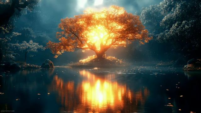 Сказочное Магическое Древо в Лучах Солнца | Fantasy Tree Light and Magic Lake - Живые Обои