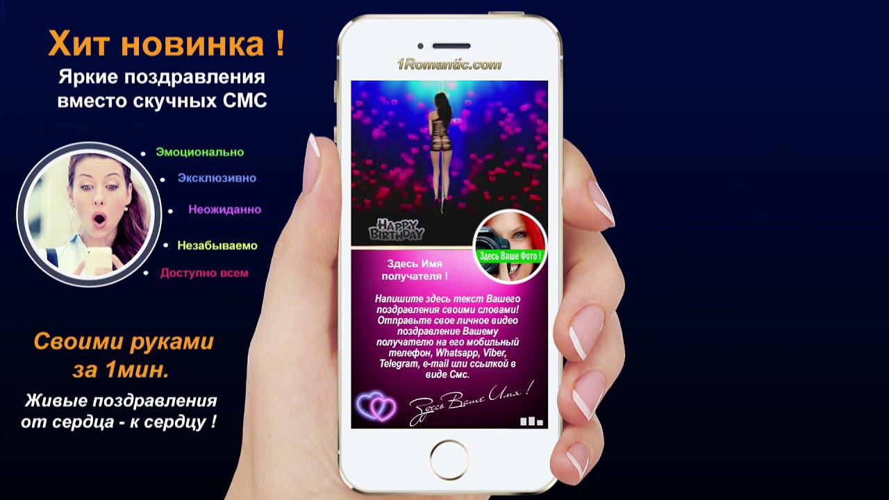 ЗАПОЛНИТЬ ЭТУ ОТКРЫТКУ СЕЙЧАС: https://1romantic.com/musicalnye-pozdravleniya/posledniy-vzdoh/ Дорогие друзья! Вам остаётся только, написать нужный вам текст и загрузить свою фотографию. 1Romantic.com Является первым и единственным в мире сервисом интерактивных видео поздравлений. Мы используем собственную уникальную технологию, добавляя ежедневно самые новые и последние разработки программирования. У нас Вы можете найти поздравления на любой вкус, только высокого качества и разрешения. Согласитесь, всегда приятней, отправить поздравления от себя лично, чем пересылать чужие, с уже заготовленным стандартным и быстро мерцающим текстом, как рекламный баннер, пересылаемый друг-другу от тысячи к тысячам где нет Ваших Имён. Задумайтесь ! Это выглядит слишком наивно и как минимум глупо, особенно для людей которые умеют писать и читать (на мою розочку сверкалку или стикер и отвали). Теперь всё будет иначе ! Вы можете сами передать своё настроение, тем людям, которым Вы будете адресовать своё поздравление. Теперь Вы сами, творец, художник и поэт своих чувств, наполняя видео открытку своими словами, излучая только самое доброе, искреннее из своих тёплых сердец. Загрузить свою любимую фотографию или фотографию получателя, что безусловно, будет гораздо приятней и неожиданней для него) Безусловно, мы подумали и о музыкальном оформление. Наверняка, Вы будете подбирать нужные слова и фотографию под ту песню, которую Вы захотите загрузить сами, а не ту которую Вам навязывают. Ну и самое главное, Вы можете использовать функцию добавления своего голоса, программа сама наложит Ваш голос на начало загруженной песни. Поверьте это очень оригинально, особенно если Ваш друг не слышал Вас долгие годы. Такое поздравление можно сделать действительно за 30-60 сек. Но если Вы творческий человек, оно не отпустит Вас так быстро))) И Вы будете думать, сочинять, плакать, улыбаться, восхищаться, раскрыв в себе новые таланты... возможно это станет Вашим первым собственноручным творением . Удачи Вам ! С уважением, Ваши Романтики ! Краткий список предлагаемых нами поздравлений... Поздравления с днем рождения женщине. Поздравления с днем рождения мужчине. Поздравления с днем рождения другу. Поздравления с днем рождения подруге. Поздравления с днем рождения для детей. Поздравления с днем святого Валентина. Поздравления Папе. Поздравления с днем рождения Маме. Прикольные поздравления. Видео поздравления с днем рождения. Музыкальные поздравления с днем рождения. Слайд-шоу с днем рождения. и многое-многое другое.
