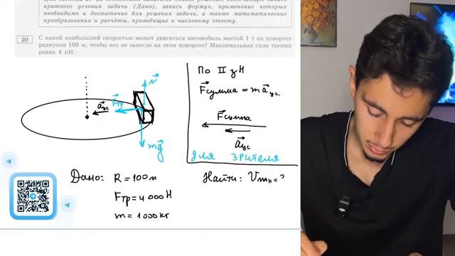С какой наибольшей скоростью может двигаться автомобиль массой 1 т на повороте радиусом 100 - №20196
