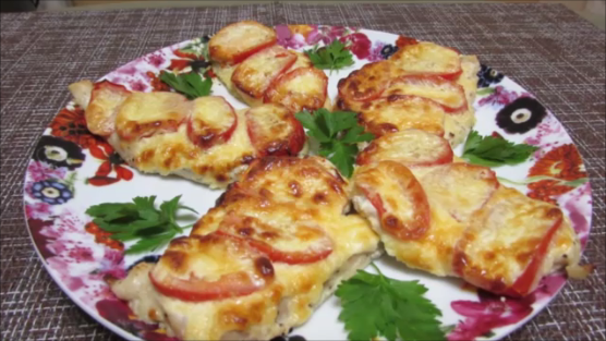 Куриная грудка с помидорами под сыром