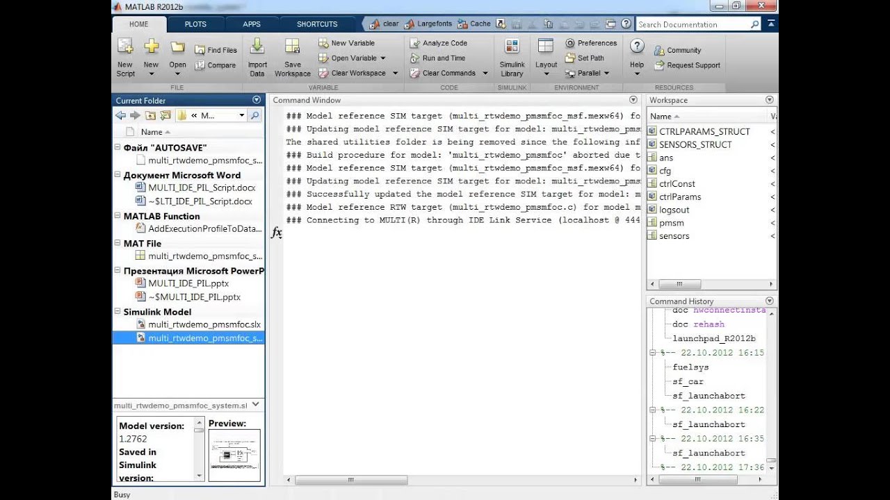 Показан пример совместной работы Embedded Coder и среды разработки Green Hills Software для верификации автоматически сгенерированного кода из моделей MATLAB, Simulink и Stateflow в режиме процессор-в-контуре (Processor-in-the-Loop). Дополнительная информация: www.sl-matlab.ru