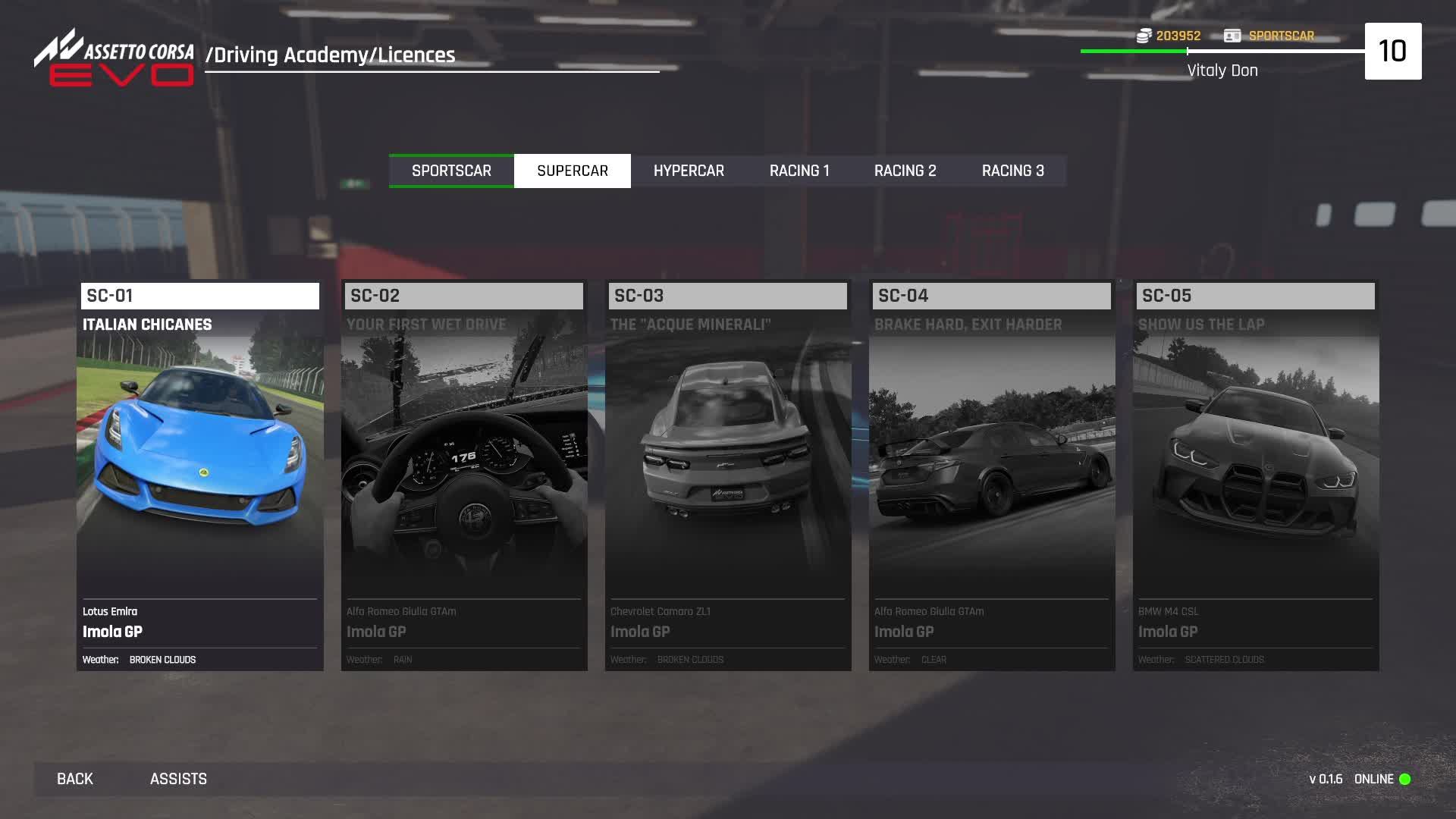 Assetto Corsa EVO. Получение лицензий Supercar ч1.