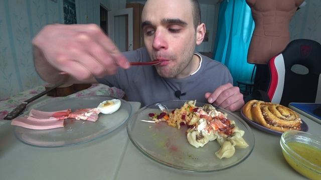 МУКБАНГ НАРЕЗКИ ЛУЧШЕЕ - ПЕЛЬМЕНИ / САЛАТ / КОЛБАСА / ЯЙЦО ВАРЕНОЕ / Mukbang АСМР 09. 02. 2024