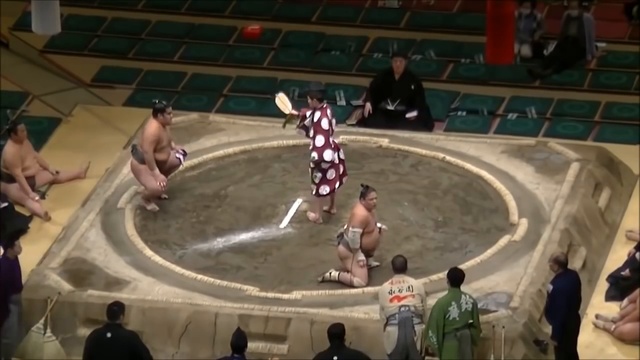 Матч сумо в Японии закончился быстро после того, как один боец ударил другого предплечьем в лицо. Соперник долго пытался встать, но у него ничего не вышло.