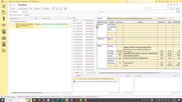 Ответы на вопросы (с иллюстрациями из компьютерной программы): 1. По разделам меню: куда относить порционный сыр, яйцо 2. Как правильно рассчитывать БЖУ (ежедневно эти показатели должны быть в пределах нормы по СанПиН или в среднем за какой-то определенный период). 3. МОБУ Сенькинская СОШ - файлы с меню загружены, а мониторинг их не видит, приходится отправлять на перепрочтение, почему? 4. Если меню составлено Роспотребнадзором калорийность и БЖУ расчитано, но программа это считает за ошибку. 5. Почему при проверке фактического меню с блюдами выставленного на сайт школы, с указанием б,ж,у при подсчете меняют (убирают) до целых цифр и не считают после запятой в своих отчетах. В этом случае получается, как будто не соблюдается потребность в пищевых веществах, энергии, витаминах и минеральных веществах? 6. Почему календарь питания не читает, после обновления его, если вдруг происходит исправления в плане отсутствия питания в школе (дистанционное обучение, праздничные, каникулярные дни) ?