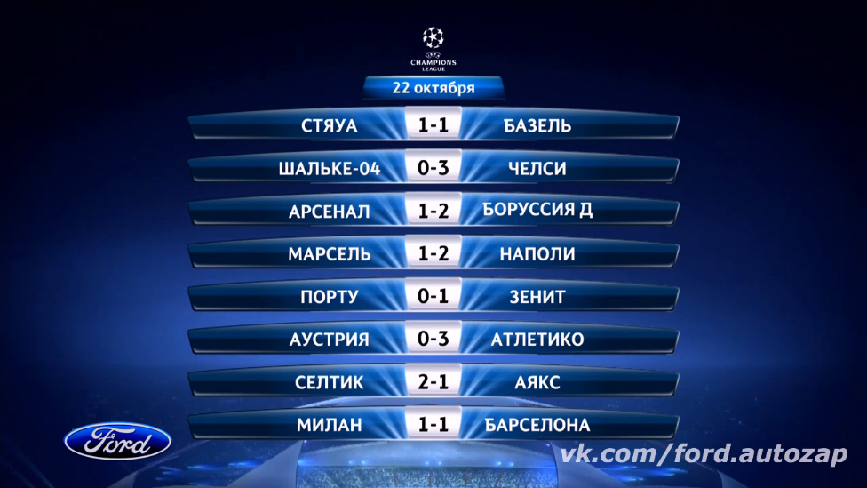 Обзор матчей ЛЧ2013/14 - 1 день 3 тур 22.10.2013 vk.com/ford.autozap