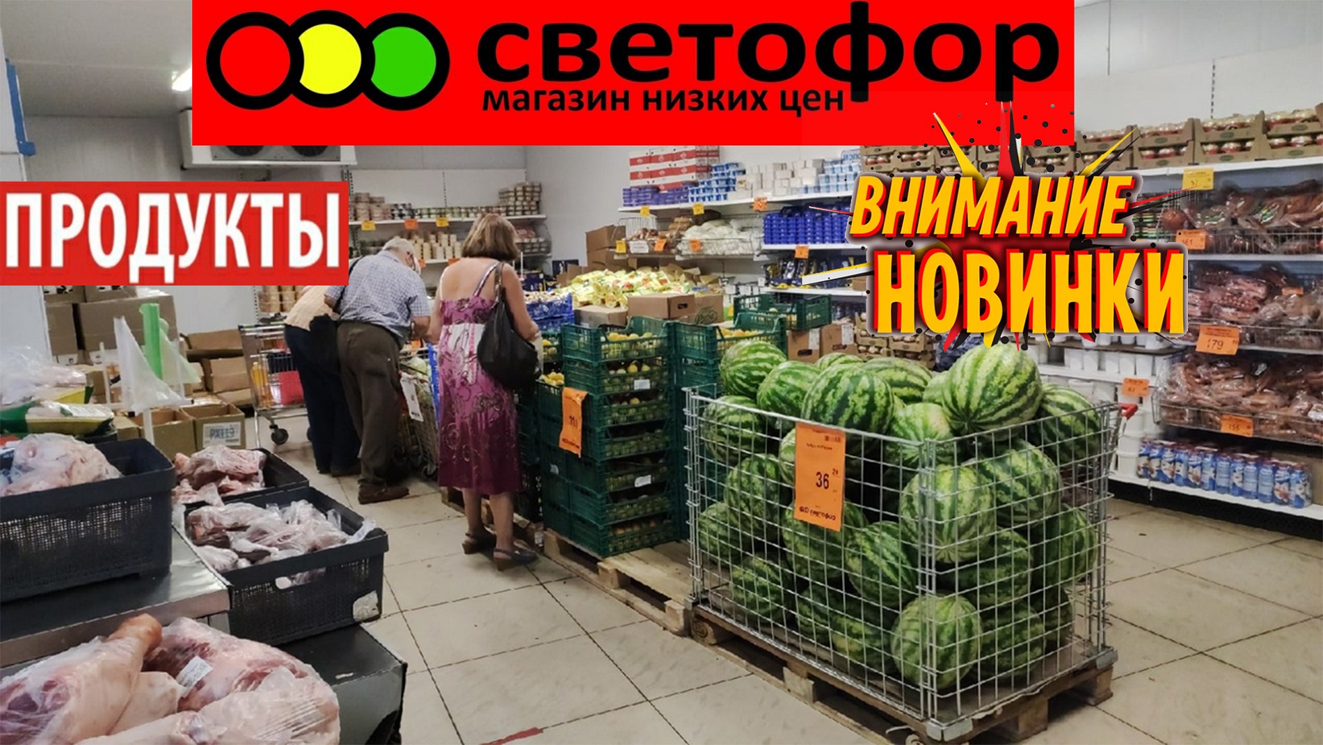 Продукты в магазине низких цен Светофор. Привезли арбузы, колбасу и много всего в холодильнике. Свежее мясо в продаже по низкой цене. Обзор