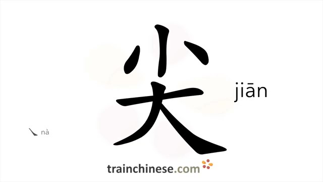 尖 (jiān) sharp; tip, top; shrewd; pointed; shrill; acutre; point (of needle)