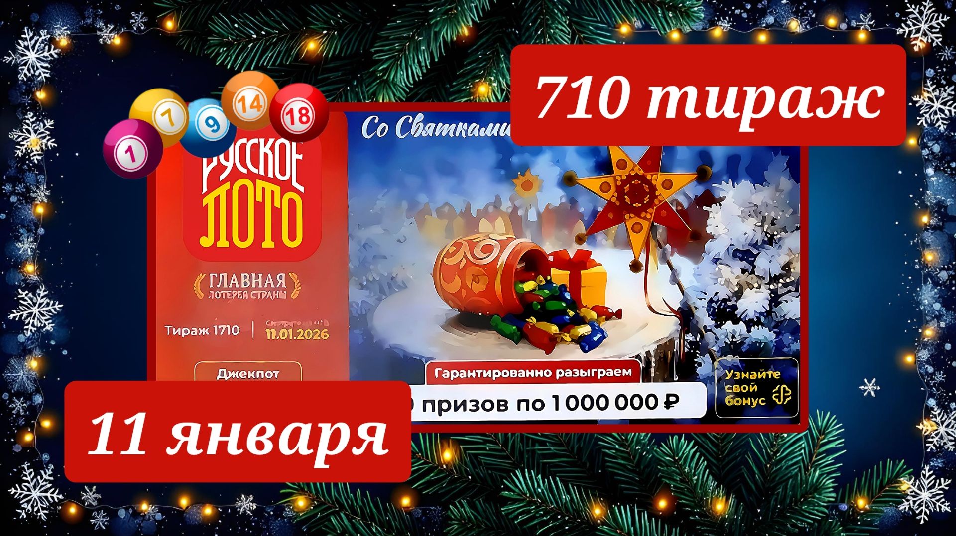 РУССКОЕ ЛОТО 1710 ТИРАЖ от 11 января 2026 года. Проверить тиражный билет СТОЛОТО.