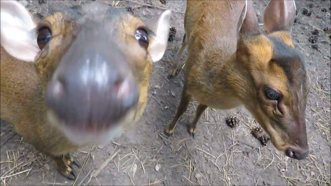 Две самки мунтжаков появились в Новосибирском зоопарке в 2019 году. Они прибыли к нам из Каунасского зоопарка в Литве. Самца привезли из Москвы. Он родился в мае 2020 года. В дикой природе эти животные обитают в Южной и Юго-Восточной Азии. По размерам мунтжаки достигают в среднем от 64 до 135 сантиметров в длине тела и от 12 до 33 килограммов в весе. У самцов мунтжаков, помимо рогов, есть также выступающие из пасти в верхней челюсти резцы. Их они часто используют в схватках с другими самцами за свою территорию. При этом также, если эти животные взволнованны или возбуждены, они издают звуки, похожие на лай собак. Известно также, что в их естественной среде обитания — азиатских странах, эти олени являются предметом охоты, а их мясо считается деликатесом.