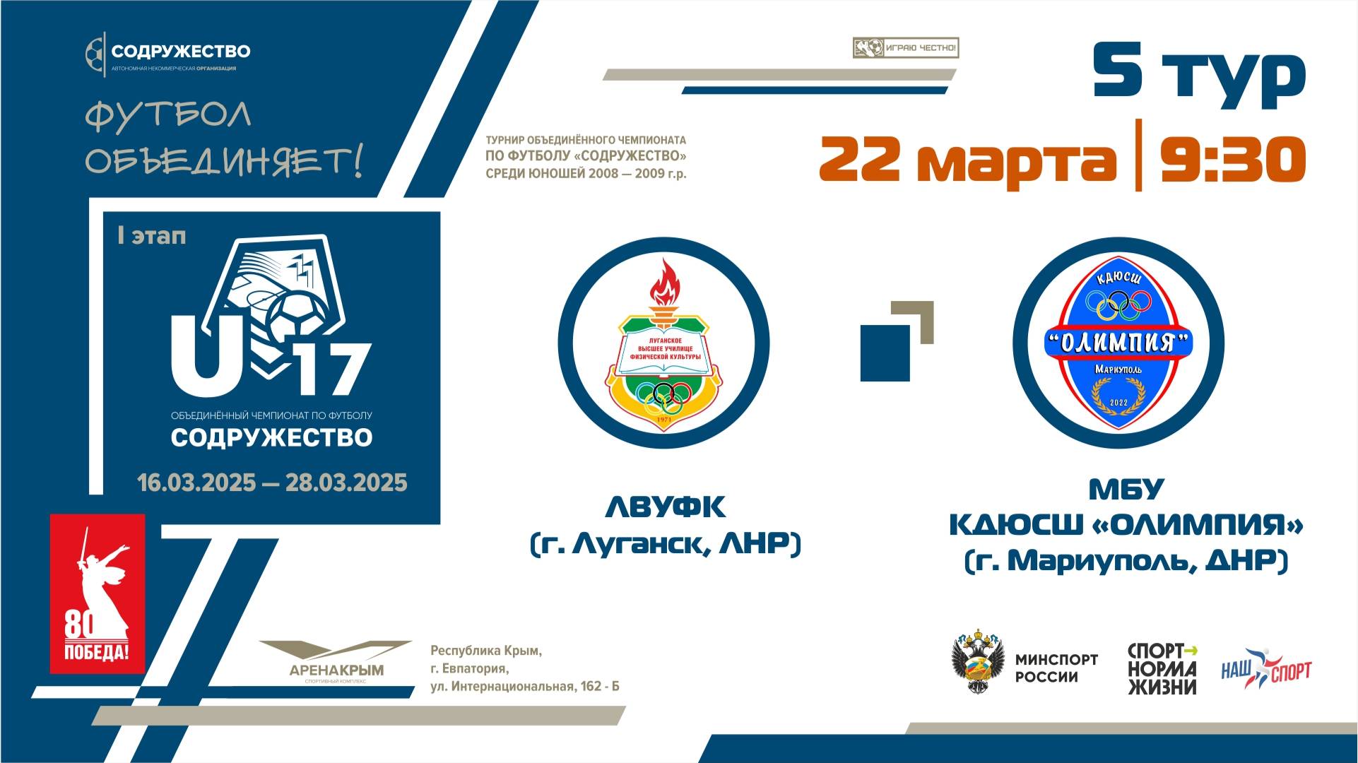 5 ТУР | U-17 | ЛВУФК (г. Луганск, ЛНР) - МБУ КДЮСШ «Олимпия» (г. Мариуполь, ДНР)