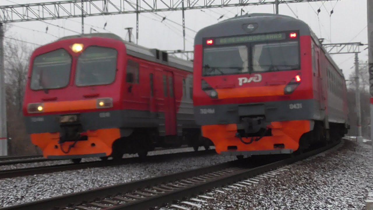 список электропоездов 1) ЭД2Т-0042 2) ЭД4М-0431 3) ЭД4М-0241 4) ЭД4МК-0020 Снято на камеру Panasonic hc-v530