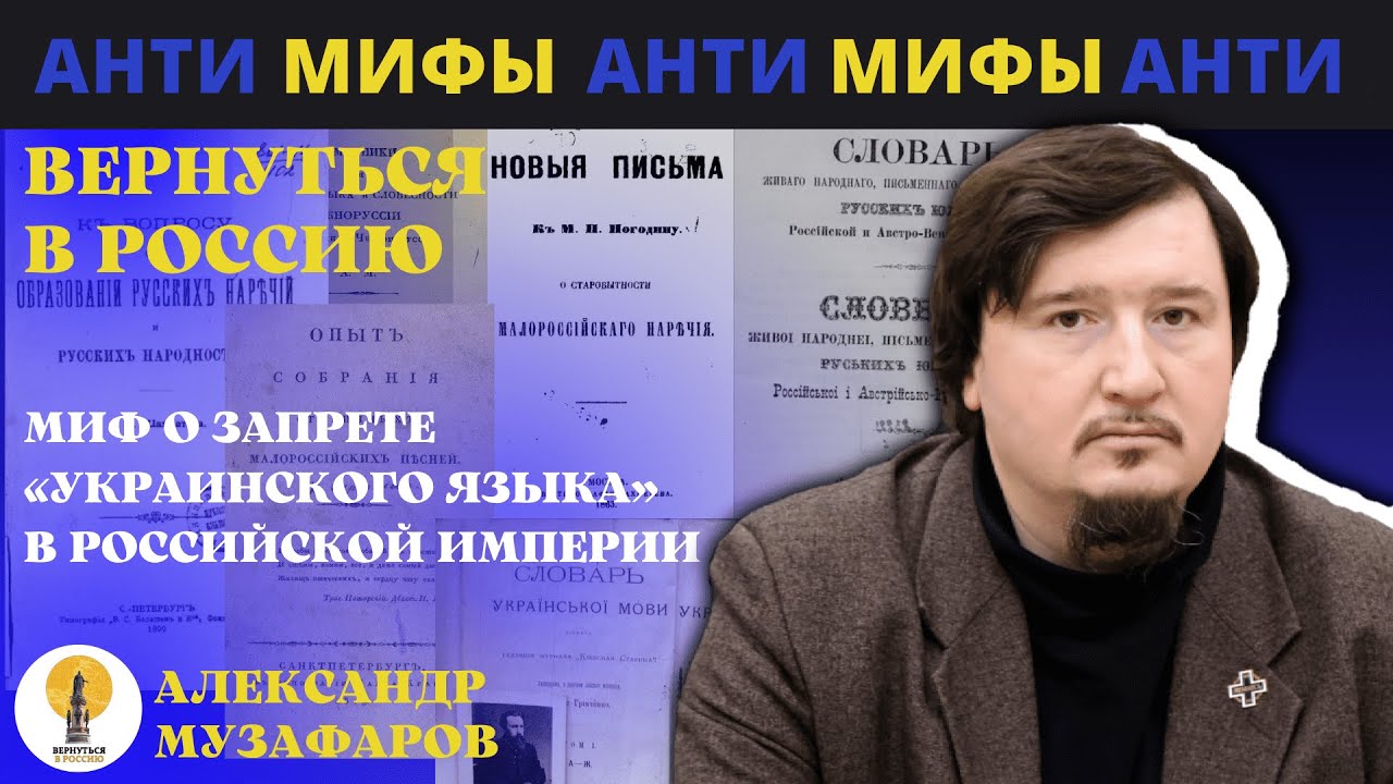 Сайт проекта: https://nbfnasledie.ru/return-to-russia/ Группа в ВК: https://vk.com/return_to_russia Предлагаем видео комментарий «Миф о запрете «украинского языка»», подготовленный историком, писателем А.А. Музафаровым в рамках проекта «Вернуться в Россию», который НБФ «Наследие» реализует при поддержке Фонда президентских грантов. Одним из распространенных мифов является представление о преследовании в Российской Империи малороссийской (украинской) культуры и особенно украинского языка. В комментарии рассмотрены вопросы о происхождении украинского языка и об отношении к нему со стороны властей Российской Империи. Эксперт отвечает на вопросы: Придумывают ли языки? В чем разница между языком и диалектом? Когда появился украинский язык (малороссийское наречие)? Изучалось ли малороссийское наречие в Российской Империи с научной точки зрения? Создавались ли в Российской Империи произведения на малороссийском наречии? Какая судьба ожидала бы малороссийское наречение, если бы не революция? Что такое «классический» украинский язык? Оправдано ли создание учебника по украинскому языку в наши дни? Видео подготовлено НБФ «Наследие» в рамках реализации проекта «Вернуться в Россию» с использованием гранта Президента Российской Федерации, предоставленного Фондом президентских грантов.