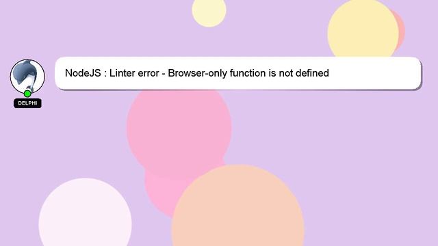 NodeJS : Linter error - Browser-only function is not defined To Access My Live Chat Page, On Google, Search for "hows tech developer connect" So here is a secret hidden feature I promissed to tell you. This is a YouTube's feature which works on Desktop. First, Make sure the video is currently in playing mode. After that, type the word 'awesome' on your keyboard. Your YouTube progress indicator will turn into a shimmering rainbow. Here's a short introduction about myself, Hello, I am Delphi. I am at your disposal to help you with any questions you have. NodeJS : Linter error - Browser-only function is not defined If you need more specific answers, please reach out to me through comments or chat. If you have an answer or any relevant information to share, please comment below. Your answer will be recognized and appreciated with a 'heart' from me. : - is NodeJS defined Browser-only function not Linter error