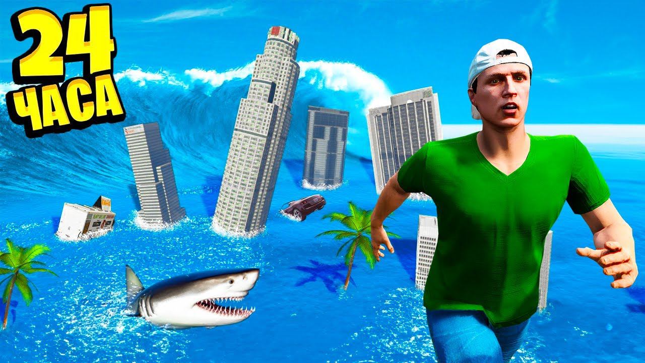 24 ЧАСА ВЫЖИВАНИЯ ЦУНАМИ! КАК ПЕРЕЖИТЬ КОНЕЦ СВЕТА TSUNAMI В GTA 5 ГТА 5 МОДЫ РАЙЛЮХА