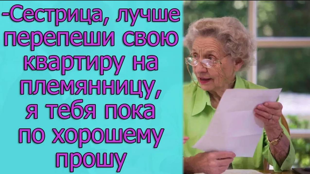 - Сестрица, лучше перепиши свою квартиру на племянницу, я тебя пока по хорошему прошу
