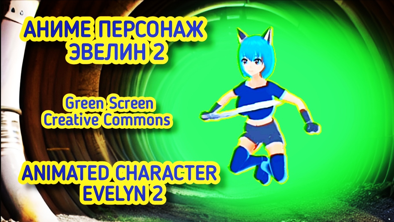 Аниме персонаж Эвелин green screen, футаж девушка на зелёном фоне.