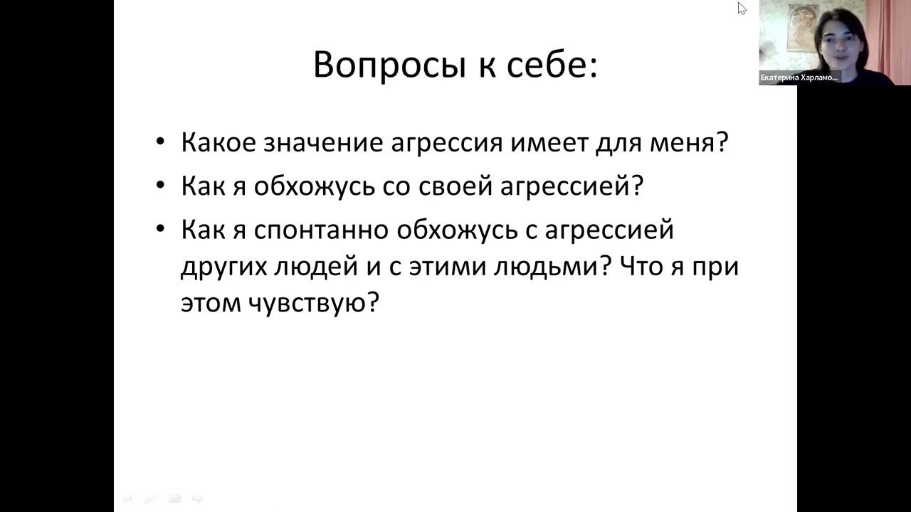 На детскую агрессию педагоги и психологи смотрят с разных сторон и обсуждают уже очень давно, при этом она остаётся одним из самых ярких проявлений проблемного поведения и вызывает массу вопросов. На этом семинаре мы разберем понятие агрессии с точки зрения реакции ребенка на сложные для него события и его стремления защитить свои ценности. Обсудим, какие это могут быть ценности в разные периоды жизни, в основном сосредоточимся на дошкольном возрасте. Поговорим о том, как можно помочь ребенку защитить их иными способами. Также поговорим про агрессию у детей с ОВЗ, и про чувства взрослого, который сталкивается с этой агрессией. Кроме того, на этом семинаре мы коснемся темы проживания нашей собственной агрессии и подумаем, какие есть варианты профилактики и скорой помощи для сложных чувств. Ведущая: Екатерина Олеговна Харламова — психолог, эксперт РБОО «Центр лечебной педагогики». Проект реализуется при поддержке Грантов Мэра Москвы для социально ориентированных НКО Комитета общественных связей и молодежной политики города Москвы #ГрантыМэраМосквы #КОСиМП ---------------------------------------------------------------------------------------- Наш телеграм-канал: https://t.me/osoboeobrazovanie Наша группа в ВК: https://vk.com/osoboeobrazovanie Наш сайт: https://study.ccp.org.ru/