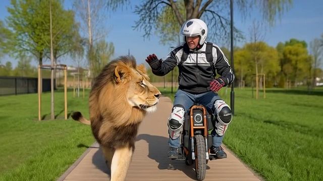 Прокатился рядом со львом на моноколесе!