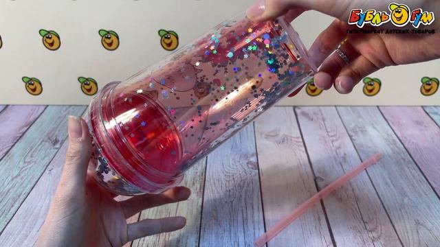 329961 Стакан пластиковый с трубочкой и объемной фигуркой динозавра в конфетти 450мл