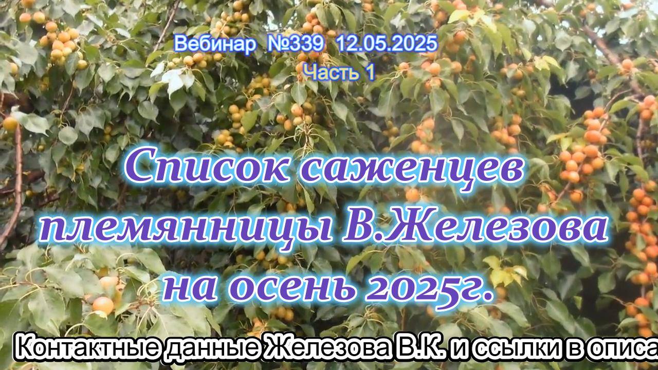 Железов Валерий. Вебинар 339. ч.1. Список саженцев племянницы В.Железова на осень 2025г.