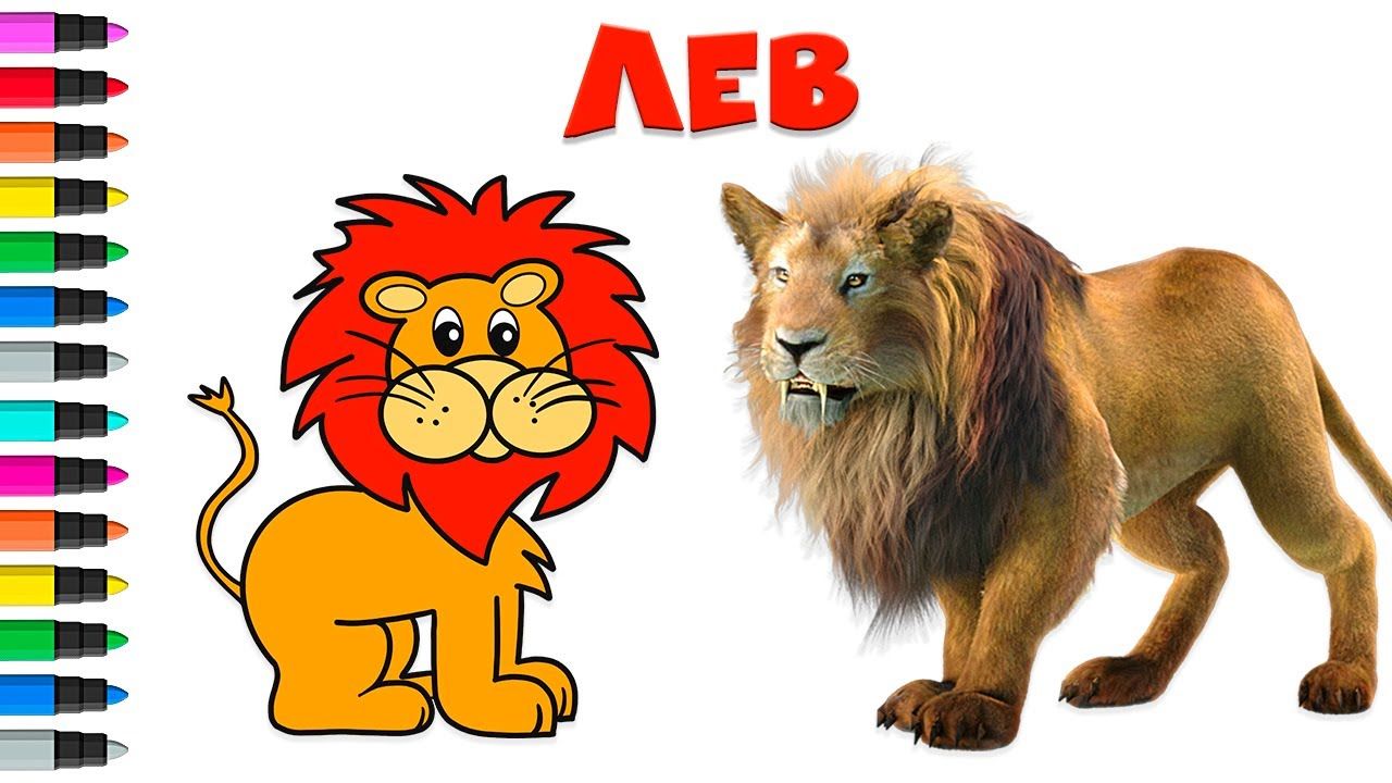 Лев - рисунок, раскраска, видео. Лев для детей. Для детей мультики добрые. Для малышей мультики. Рисунки шаг за шагом. Уроки рисования.