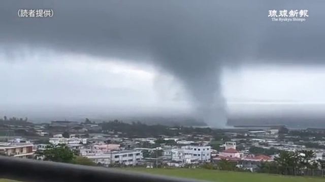 Водяной смерч вышел на сушу на острове Иэдзима (Япония, Окинава, 5 марта 2024).