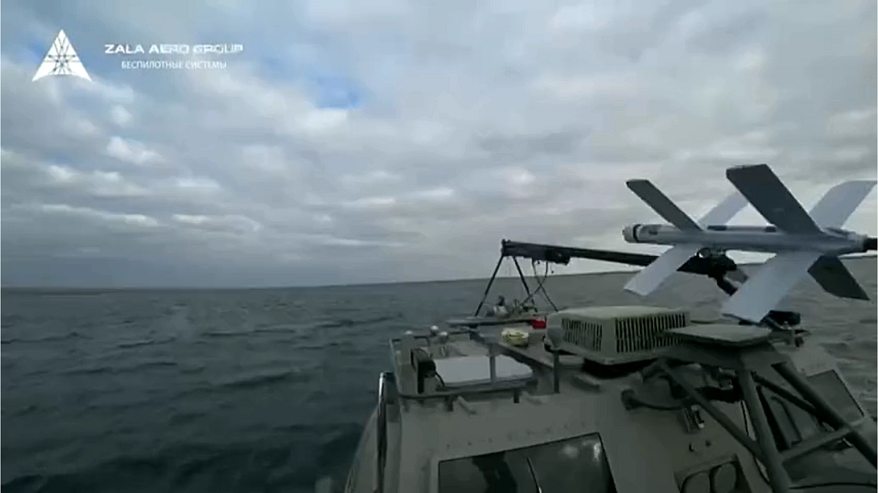 Видео испытаний российского дрона-камикадзе "Ланцет" с морского носителя