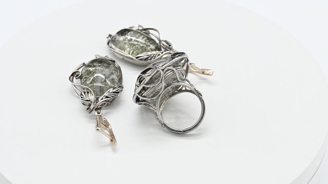 •Авторское украшение ручной работы. Камни установлены в оправу из ювелирного сплава - нейзильбер. •Форма и рисунок камня никогда не повторяются, что делает данное изделие единственным в своем роде. •Габарит кольца 26*34мм, серьги 22*35мм. •Швензы изготовлены из серебра проба отсутствует. Цена: 10 400 руб. https://radugakamnya.ru/catalog/ukrasheniya_iz_kamnya_po_tipam/koltso_i_sergi_1/koltso_i_sergi_kvarts_fantom_khloritovyy_kvarts_razmer_16-194847/