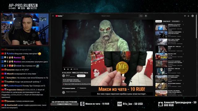 Донат в поддержку стримов и вопросы в эфир - https://www.donationalerts.ru/r/wolfstalkerap Премиум-подписка на Бусти - https://boosty.to/thewolfstalker Премиум-подписка на VK - https://vk.com/donut/approduction Донат напрямую без комиссии - https://ap-pro.ru/donate/ Отправить мем - https://memealerts.com/TheWolfstalker Альтернативный донат - https://new.donatepay.ru/@TheWolfstalker Задать вопрос\кинуть видео - https://ap-pro.ru/forums/topic/934-ap-pro-live/ Плейлист со всем прохождением - https://www.youtube.com/playlist?list=PLWU5dTKPY3Xl9dyj5IcO-1JwYlHHVSZ_g Анонсы стримов и личный паблик Вульфа - https://vk.com/thewolfstalker Официальный сайт AP PRO - https://ap-pro.ru/ Группа AP PRO ВК - https://vk.com/approduction Discord-Канал AP PRO - https://discordapp.com/invite/KS2eahR Основной Youtube - http://www.youtube.com/TheWolfstalker Life-канал Youtube - https://www.youtube.com/c/WolfstalkerLife VKPlay - https://vkplay.live/thewolfstalker Telegram - https://t.me/stalkerappro Tik-Tok - https://www.tiktok.com/@ap.pro Яндекс.Дзен - https://zen.yandex.ru/thewolfstalker Топы модификаций - https://ap-pro.ru/index/top/ Топ поддержавших канал за все время: ЧАК НОРРИС Witness of Highlord Bell Nazgul r1pecl1ps3 Алексей Просандыров Z3SA Николай Макеев stalkershepard Коллекционер Вариации оповещений о донатах можно посмотреть на странице отправки сообщений - http://www.donationalerts.ru/r/wolfstalkerap ● Связь со мной: Я ВКонтакте - https://vk.com/prosandeev Почта - wolfstalker2@yandex.ru Steam - http://steamcommunity.com/id/wolfstalker92/ Мой PC и комплектующие: - Видеокарта ASUS GeForce RTX 4080 NOCTUA OC 16G - Процессор Intel Core i7-13700K OEM - Оперативная память G.SKILL DDR5 TRIDENT Z5 RGB 64GB - Материнская плата ASUS ROG STRIX Z790-A GAMING WIFI - Блок питания Super Flower Leadex VII Gold 1000W ATX 3.0 SF-1000F14XG - Корпус LIAN LI PC-O11 Dynamic XL ROG Certify Silver G99.O11DXL-A.00 - СВО для процессора ARCTIC Liquid Freezer II-360 A-RGB - Вентиляторы для корпуса ARCTIC P12 PWM PST A-RGB - 2000 ГБ SSD M.2 накопитель Samsung 970 EVO Plus - 500 ГБ SSD M.2 накопитель Samsung 980 PRO - 2x HDD WD Black по 4 ТБ - Windows 11 PRO 64bit - Микрофон AT2020 и FIFINE AMPLIGAME AM8 - Мониторы MSI G274QPF E2 27" + Xiaomi A24i + Кронштейн ONKRON G200 - Камера Logitech HD Pro Webcam C920 - Клавиатура A4 Bloody B328 - Мышь A4TECH Bloody X5 Max - Наушники SVEN AP-U880MV, - Стол ZONE 51 PLATFORM PRO 160 - Кресло Zombie VIKING 7 KNIGHT ⚡Правила поведения в чате: ⇨ Не спамить и не флудить. ⇨ Не злоупотреблять капсом. ⇨ Не использовать нецензурные выражения, завуалированные тоже. ⇨ Не оскорблять стримера и других зрителей, а также личностей, не связанных с данным стримом. Уважайте друг друга. ⇨ Не переходить на личности и не выяснять отношения. Для этого можете перейти в личные сообщения и решать ваши личные проблемы там. ⇨ Не обсуждать темы религии и политики. ⇨ Не рекламировать что-либо, не относящееся к данному стриму или его стримеру. #сталкер #stalker