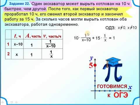 8 класс. Дробно-рациональное уравнение Один экскаватор может вырыть котлован на 10 ч быстрее, чем другой. После того, как первый экскаватор проработал 10 ч, его сменил второй экскаватор и закончил работу за 15 ч. За сколько часов могли вырыть котлован оба экскаватора, работая одновременно
