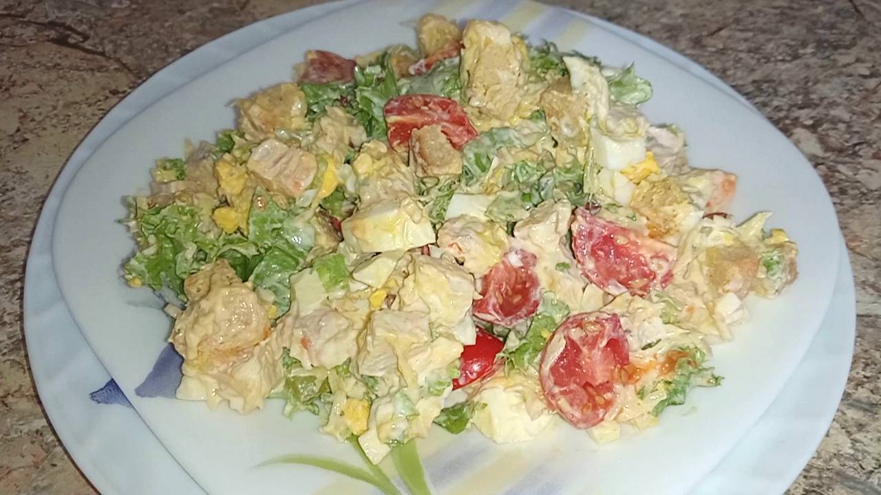 ЧЕМ ТО ПОХОЖ НА САЛАТ "ЦЕЗАРЬ" РЕЦЕПТ ПОЛЕЗНОГО, ОЧЕНЬ ВКУСНОГО И СЫТНОГО САЛАТА. РЕСТОРАННЫЙ САЛАТ.